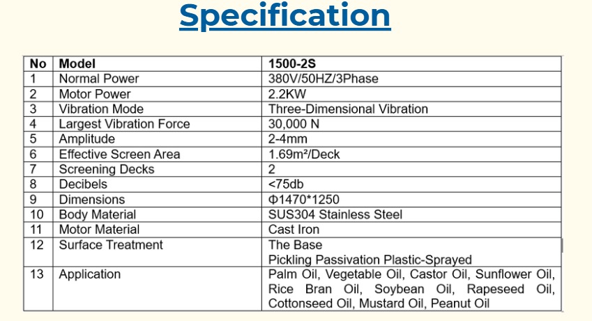 The Double-Deck Palm Oil Vibrating Screen Basel is designed for enhanced separation efficiency, featuring two screening layers that deliver both coarse and fine filtration within a single unit. Engineered for mills with higher capacity requirements, this model ensures optimal clarity of crude oil while maintaining Basel’s reputation for durability, reliability, and exceptional performance.